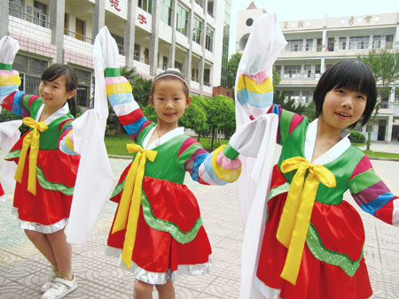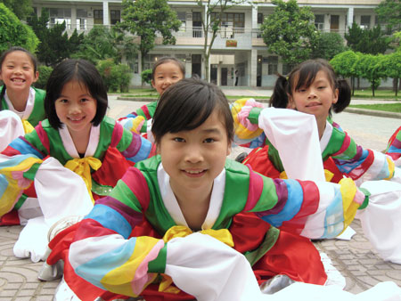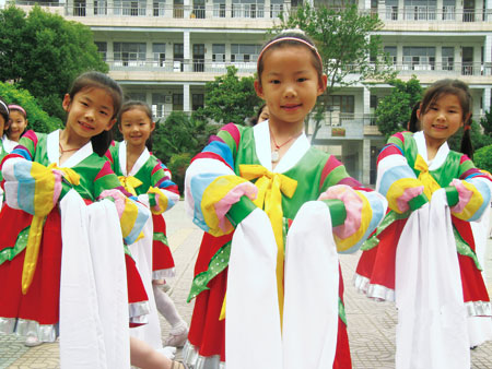 望江县第一小学的一群可爱的女生们正在排演的节目就叫《幸福的阿里郎》,在这些舞蹈精灵的身上,我们也能发现一丝阿里郎的影子。