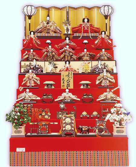 每个日本女孩都有长辈送的一套小偶人,据说它们是女孩子的保护神。一套偶人,一般有15个,它们有皇帝、皇后、宫廷贵妇人、乐师、大臣和卫兵。