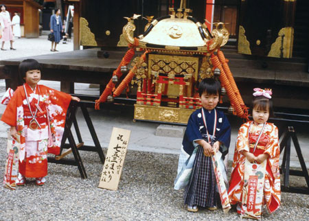 这一天,不论是男孩还是女孩,大家都会穿上最好的传统和服,还会背上一个画了松树、乌龟或鹤等图案的小纸袋,纸袋里装满了父母买的糖果和玩具。穿戴整齐后,父母会带小朋友上日本神社,祈求并感谢神明给小朋友带来健康和快乐。
