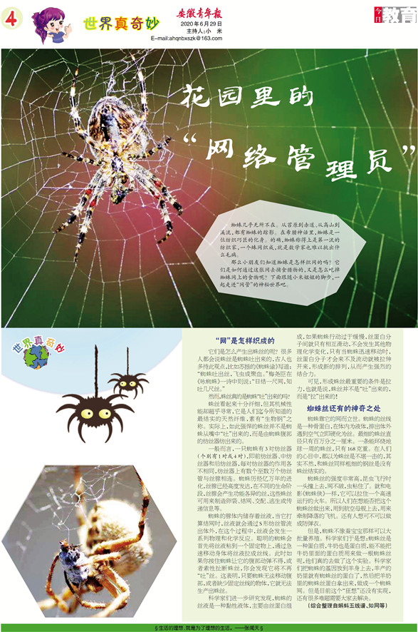 那么小朋友们知道蜘蛛是怎样织网的吗?它们是如何通过这张网去捕食猎物的,又是怎么吃掉蜘蛛网上的食物呢?下面跟随小米姐姐的脚步,一起走进“网管”的神秘世界吧。