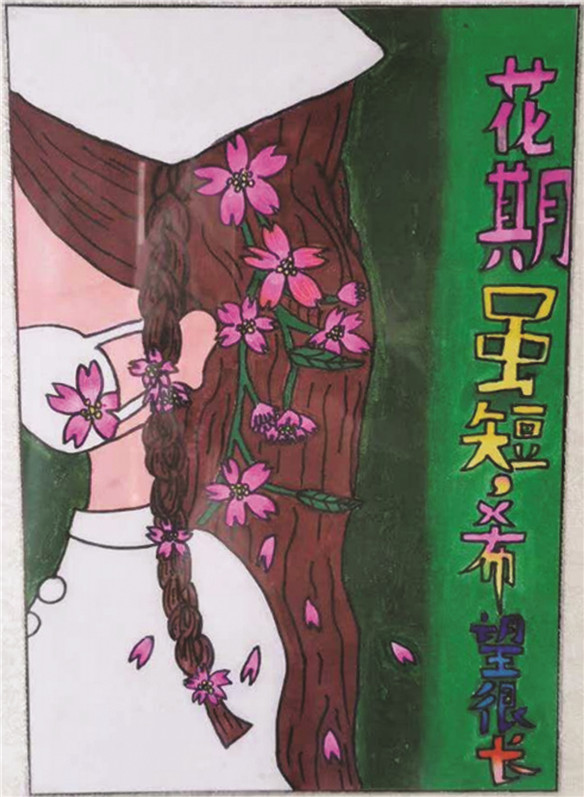 国画和卡通画相比,卡通画增加我的想象力,而国画更有意境。右面这幅卡通画是我为抗击新型冠状病毒所作——花期虽短,希望很长。画中美丽的白衣仙女姐姐是我心中的希望女神,为人间带来健康、平和与美好!