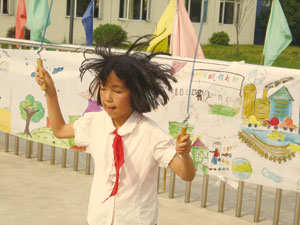 这样的比赛规则,对同学们来说吸引力太大了。来自四年级的白乐天同学告诉我们,他最喜欢的项目是“踢足球”,要求是用最短的时间把前面的10个瓶子踢倒就算赢,从小爱运动的他可算百发百中,一次性就踢倒6个,这个成绩可是相当厉害。另外,“一锤定音”和“快速跳绳”项目中他都取得不错的成绩,不过在小乐天看来,最难的要算是“匍匐前进”,没一定的技巧还真不行。