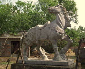 项羽被后人尊称为西楚霸王,自然有他过人的本领,但是有人传说项羽可以举起千斤重的大鼎(dǐnɡ),真的是这样吗?在“浣发池”不远处,学生记者们发现了他的坐骑乌骓马的雕塑,据说它就是项羽用“拔山之力”驯服的。