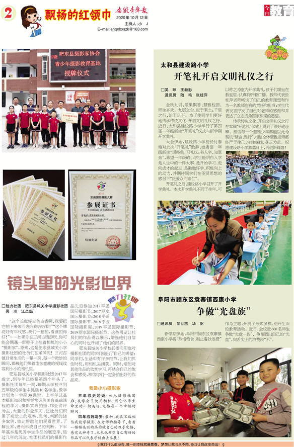 五年级史娇娇:加入摄影社团后,我学会了使用相机,用它记录生命里的一切美好,定格每一个幸福的瞬间。