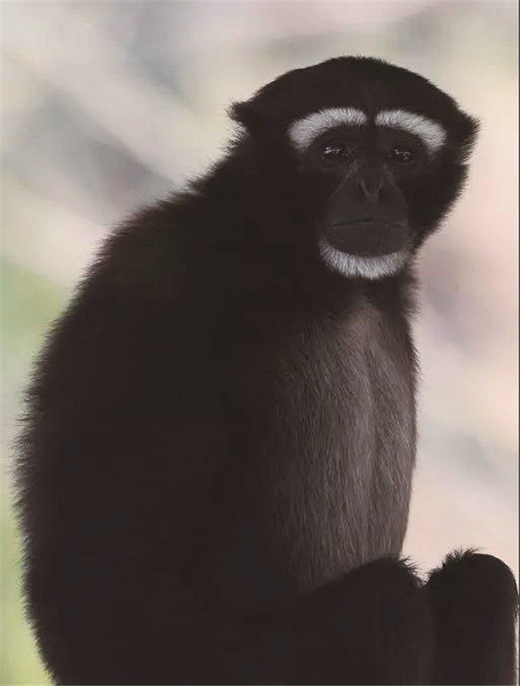 北白颊长臂猿也是冠长臂猿属的一个物种。北白颊长臂猿和前面讲过的三种长臂猿相比,最大的特点是雄性的两颊呈白色。这种长臂猿曾经广泛地分布在我国西双版纳地区,数量多少现在已经无法统计。