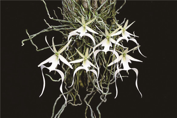 在自然环境中,幽灵兰只附生在古巴、佛罗里达以及巴哈马等地的沼泽树木上。它们的茎叶几乎完全退化,固定身体、光合作用以及吸收水和养分这些苦差事,都由灰绿色的扁平须根独自完成。幽灵兰的苍白花朵形状怪异,而且开放在细长的花葶顶端。在夜风中飘荡不定的幽灵兰花们,就像是一群永无归路的哀怨灵魂。
