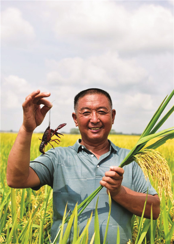 学生记者走进180亩稻虾地里,一幅“虾戏稻花间,米优虾更肥”的画卷跃入眼帘。“哇,这个米好香啊!是龙虾的味道吗?”“龙虾太健壮了!瞧!那只穿着黑里透红的盔甲,舞动着偌大的钳子,好像在向我们展示它的威武。”学生记者们你一句我一句地在讨论着。原来香香的大米,健壮的龙虾都得益于崔兴文独特的养殖之道——稻虾共养。长丰县实验小学四(5)班的卢思铭率先问道:“崔叔叔,您为什么会选择稻虾共养呢?”崔叔叔耐心地回答着学生记者的提问。原来早些年,他曾尝试过稻田养泥鳅、养黄鳝,几乎所有成熟的稻渔种养模式他都做过尝试,结局却都不甚如人意。一次偶然的机会,他从网上发现,养殖龙虾不仅不需要出重体力,而且成本低,利润大。既要保证“口粮”,又想养虾挣钱,于是他潜心钻研,探索“稻虾共养”。“稻虾米既不打农药,又不施化肥,水稻里的杂草被虾子吃了,虾子的粪便又变成稻子的肥料。这样种出来的稻谷米质优良,有一股特殊的清香,同时保护了生态环境,是一举多得!”2016年,崔兴文光荣脱贫,并翻新了三间大瓦房。