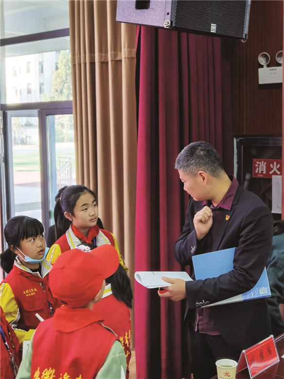 大会仪式一结束,我们的学生记者也立马行动起来。杨家慧和李怡诺采访了团县委书记卢慎,通过卢书记的介绍,大家知道了少先队代表大会是队组织实施民主集中制领导和管理方法的具体体现;是让少先队员实施民主权利、当家作主的保证;是队员学习民主、发扬民主、培养民主能力和主人翁思想的重要形式。少先队员作为少先队的小主人,每个队员都应该关注少代会,积极地宣传少代会,做弘扬社会主义核心价值观的小模范。