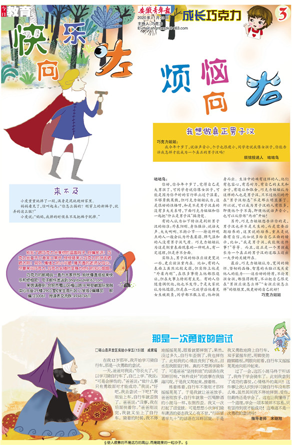 另外,巧克力姐姐想告诉你的是,男子汉也并不是天生的,而是需要后期培养的,这里说的培养,重点是说要有自信,比如说多给自己正面的暗示,比如,“我是男子汉,我能做这件事!”等等。而且,这正是一个男孩成长为一个真正的男子汉的道路上迈出一大步的关键所在。