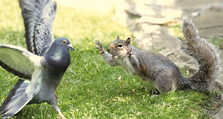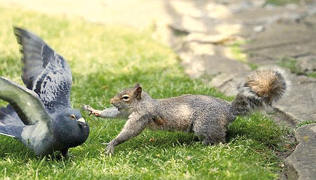俗话说“笨鸟先飞”,不笨的鸟手脚慢了也不行啊!一只英国籍的鸽子,前几天也是因为速度的原因,被一只松鼠欺负了。