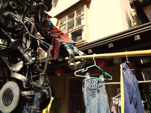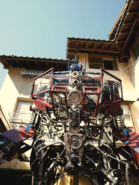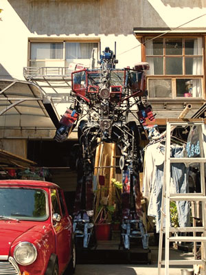擎(qínɡ)天柱是谁?传说中它们是昆仑山里的八根撑天用的超级大柱子;在《变形金刚》里,它是博派,是汽车人,是正义的战斗机器人;然而在台湾,它是浓浓父爱汇聚成的有两层楼高的傻大个,还能抬晾衣杆! 在台湾南投县,一位父亲花5万元给孩子制作了一个铁皮擎天柱立在自家院子里。儿子虽然很感激爸爸的宠爱,但是…… 这个有两层楼高的傻大个实在没法玩,搬都搬不动,更别提变形了,只能每天站在它面前仰着脖子观赏!还是让它给妈妈抬晾衣杆晒衣服好一些……