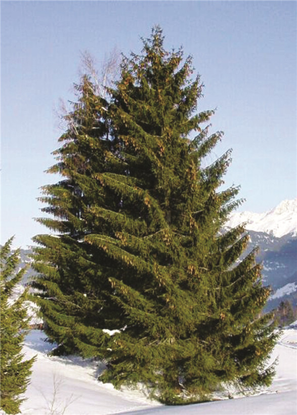 其次,云杉属(Picea)也是生产圣诞树的“大户”,尤其是挪威云杉(Picea abies),由于易于种植、价格便宜,因此也是十分常见的圣诞树树种。从树形和叶形上看,云杉和冷杉十分类似,都有着塔状的树形和条形质硬的叶片。不过,云杉的球果通常是下垂的,而冷杉的球果则多为直立向上。