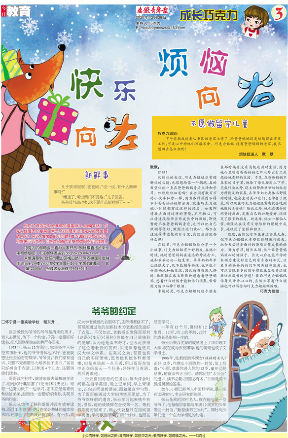 张云是我的同村名人,现在他也是一位爷爷了,他每每回家都给年满12周岁的少年带回一封信:“勤奋读书正当时”。同时与少年们定一个在大学相见的约定。