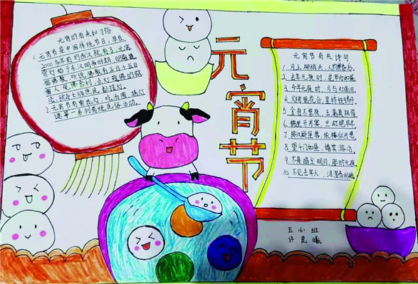 砀山县砀城第一小学的同学们绘制了精美的手抄报,每一张小报都体现了大家对元宵节的认识和理解,元宵节讲究的就是一个“闹”字,庆元宵、闹元宵,让元宵节过得热热闹闹丰富多彩。