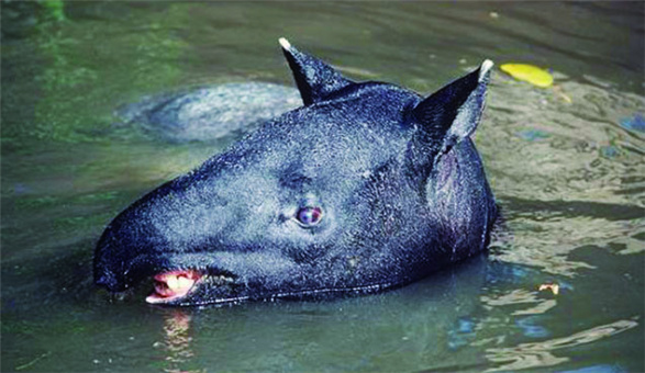 马来貘是生活在东南亚地区的大型哺乳动物。它们的体长可达2.5米,是夜行性的素食主义者。这种动物的视力很不好,在森林和沼泽中求生主要依靠敏锐的嗅觉和听觉。马来貘的“长鼻子”看起来像“低配版”的象鼻,也是由鼻部和上嘴唇共同组成。马来貘和大象的亲缘关系并不近,相似的鼻子只是趋同进化的结果。