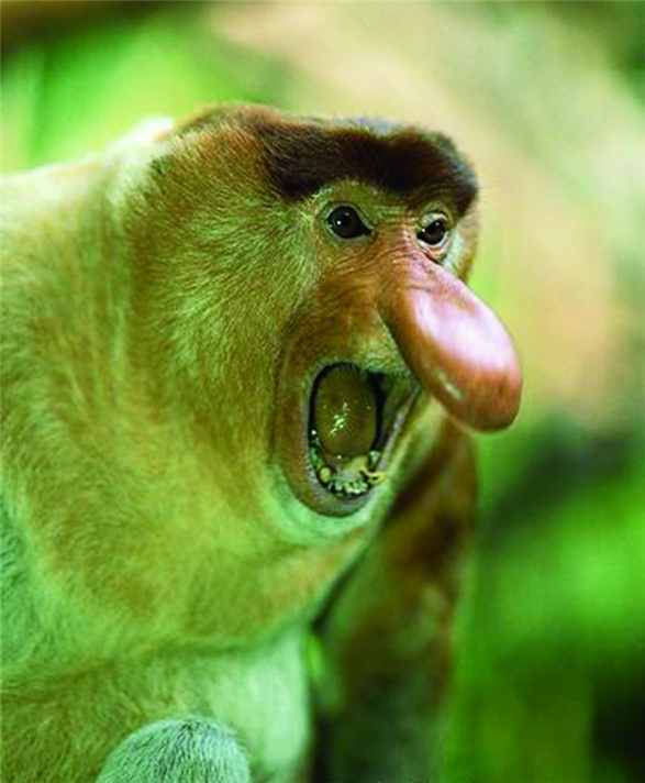 雄性长鼻猴的鼻子超过10厘米长,雌性的鼻子虽然也不小,但远不及雄性夸张。有理论认为,长鼻猴之所以产生了雌雄相异的鼻子,是因为“生殖选择”。简单来说即是,雌性长鼻猴特别偏爱鼻子更大,发声更响亮的雄性。由此雄性个体大鼻子的基因代代延续下来,成为了群体中的主流。雄性的鼻子作为第二性征,是在成年之前慢慢长大的。除了鼻子之外,雄性长鼻猴的体型也比雌性大,这一物种“性二型”的特征表现的比较明显。在繁殖过程中,一雄多雌的“后宫制”也是长鼻猴种群中的主流。