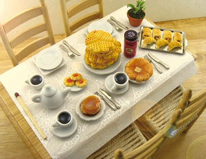 橡皮泥、黏(nián)土,还有现在比较流行的软陶,这些材料对于喜欢泥塑、陶艺的同学而言都不陌生。有的人觉得橡皮泥捏在手里的质感很好,有人却认为软陶制作出来的效果最棒,而在艺术家手里,不论是何种材料都能塑造出让人吃惊的物件来!比如一顿中西合璧的丰盛大餐!