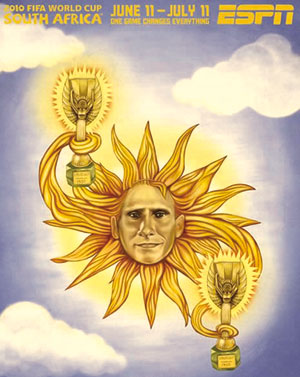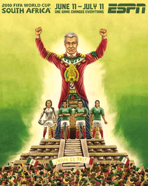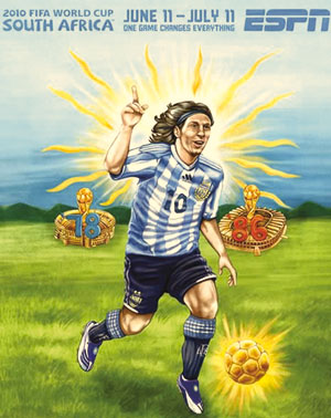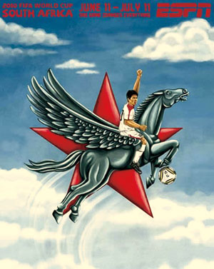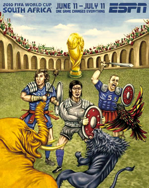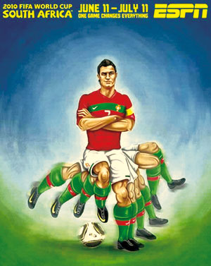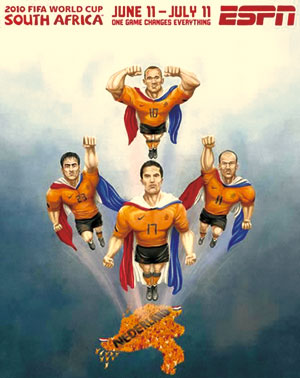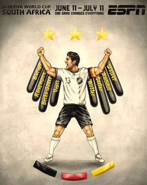早在赛事还未展开时,当今世界最著名的体育电视网ESPN就推出了一组以世界杯32强为主题的手绘海报。在这组颇有漫画性质的海报中,每支球队的特点都被展现得淋漓尽致。