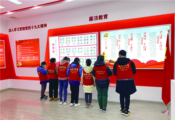 一张张照片生动地谱写着中铁人与中铁四局物资工贸合肥分公司的故事,还有中铁人建造的辉煌建筑,“水流那么急,怎么在水下打桥墩呢?”“这些建筑所用到的材料都是通过中铁四局物资工贸合肥分公司采购和供应的吗?”学生记者陶铭川和何雨轩争先恐后地提问着。得到专业的解答后,学生记者一行来到党员教育基地,毕雪茹姐姐详细地介绍了展厅内各板块的内容,让学生记者们了解到近年来企业党建和宣传文化取得的成果。