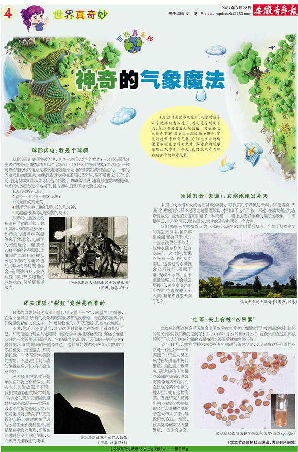 3月23日是世界气象日,气象对每个人来说再熟悉不过了,明天是否刮风下雨,我们都要看看天气预报。可世界之大无奇不有,历史上出现过很多怪异、罕见的超玄乎神奇气象,它们发生时的场景毫不逊色于科幻大片,其背后的科学原理让人咋舌。今天,我们就来看看那些超玄乎的神奇气象!