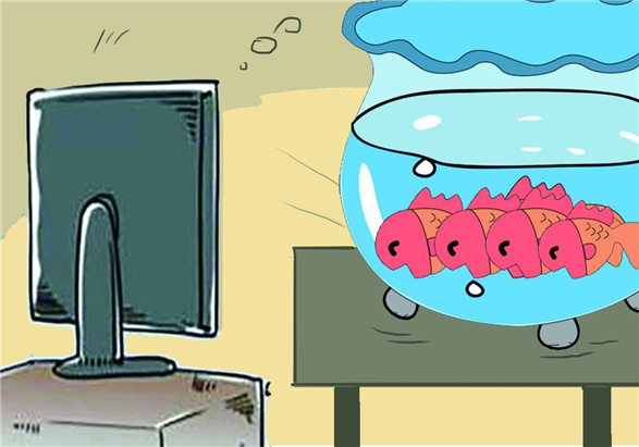 金鱼排成一排看电视