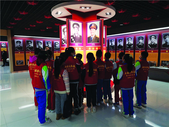 随后,在杨阿姨的带领下,学生记者走进了烈士纪念馆展厅。她告诉学生记者,金寨县已追认的革命烈士有一万一千余名,占安徽省烈士总数的五分之一。但在革命战争年代,金寨先后有十多万英雄儿女参军参战,绝大多数血洒疆场、为国捐躯。看着烈士的名字一个个刻在墙上,学生记者们纷纷举起了手,默默地向他们敬了一个庄严的少先队礼。