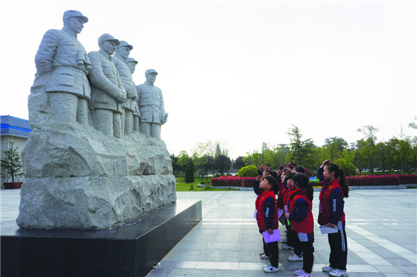 四(3)班 陈恩琪:今天浴血搏杀的战场已不复存在,取而代之的是生机勃勃的景象,但是,那一张张老旧的照片、一件件珍贵的遗物,记录着烈士们的无私和伟大。先烈们的事迹、精神,永远激励着我们奋勇向前。我要努力学习,继承你们留下的光荣传统,让这片红色的土地继续绽放光彩。