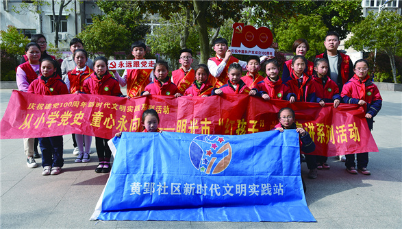 □李 祥 王 君 为更好地加强未成年人思想道德建设,近日,明光市教育体育局“红孩子”党史宣讲团联合黄郢社区在酒厂白楼小区开展“红孩子”党史宣讲活动。此次活动由明光市实验小学和工人子弟小学的部分少先队员参与,活动中少先队员们为大家带来《中国共产党的诞生》《金色的鱼钩》《英雄董存瑞》等精彩的故事宣讲,在《没有共产党就没有新中国》的激情演唱中,宣讲活动进入高潮。通过活动,让队员们加深了对党史的了解,培养了他们热爱中国共产党、热爱祖国的朴素情怀。