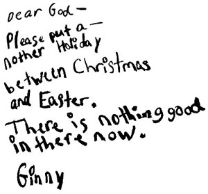 亲爱的上帝,请在圣诞节和复活节之间再加一个节日,现在一点都不好。——Ginny