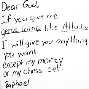 上帝在西方人心目中是十分神圣的造物主,他们认为世界上所有一切都是上帝创造的。小朋友们也这样认为,每当他们有解决不了的问题都想问上帝,于是他们就会给上帝写信!