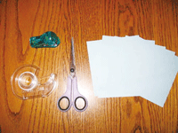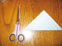 1 取一张纸对折,再对折,用剪刀平行地剪几道缺口。
