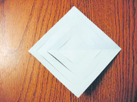 2 展开纸片,用胶带粘上最中间的正方形对角。