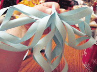 4 第三个、第四个……以此类推,直到把所有正方形都粘贴成纸卷,如图4。