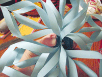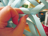 5 剩下的纸片也同样做成纸花,对齐其中一端。