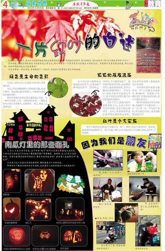 那时叶绿素还没有完全枯竭,我就像个大花脸似的——红一块、绿一块。只有到了深秋,我才能完全变红,成为名副其实的红叶!