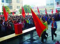 近日,在怀远县实验小学的校园里,一场爱心捐款正在紧锣密鼓地进行中。随着少先队队歌的节奏响起,全校师生秩序井然,他们正在为三(1)班的李甘泉同学献爱心。 李甘泉同学从一年级就患上“杜氏型肌营养缺乏症”,经过多次手术还没有完全康复。目前是最佳的治疗时间,为了治好他的病,至少还需要30万元的手术费用。但是,多次手术已经让本来就不富裕的家庭雪上加霜。听到这个消息,全校师生纷纷伸出援助之手,在共同帮助下,大家相信李甘泉同学一定能重新回到熟悉的校园。 □记者 许 龙