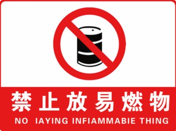 不妨来认识些消防标志吧。看到它们,你最好照办,否则危险可能会找到你哦。 禁止存放易燃物
