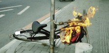 自行车竟然也引火上身!天干物燥,小心火烛哦。