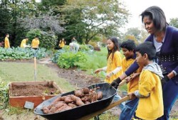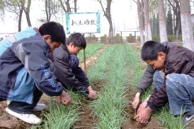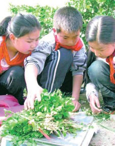 山东省枣庄市峄城区刘村小学的学生选择“下网”,在校园的Q版农场里翻起地来。现实版翻地可不比网上农场,鼠标一点,泥土就翻个个儿!长长的一畦(qí)地,大家不仅要耐心,还要小心翼翼,不能伤到作物的根。