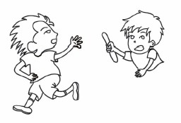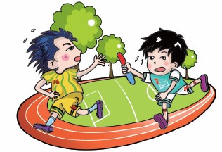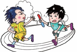 哈哈漫迷 1.在纸张的左方,画出男孩回头伸手取接力棒。 2.拉开男孩双腿之间的距离,展示他奔跑的状态。
