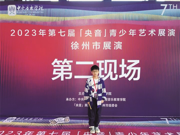 所获奖项:2021年第十七届华人青少年艺术节金奖、宿州市“诵读中国”经典诵读大赛三等奖;2022年、2023年江苏省第四、五届打击乐大赛一等奖、安徽省少儿书画大赛儿童组优秀奖;2023年砀山县优秀少先队员、“红领巾奖章”个人三星章、第七届央音青少年艺术展徐州市级小学组金奖等奖项。