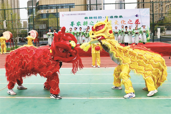 合肥市青年路小学教育集团云谷路小学执行校长徐来燕称,学生是文化根脉的守护者,学校将非遗主题融入全年“四周五节”活动,让学生们在劳动中领悟创造幸福的意义,成为非遗传承的实践者,并于动手体验中点亮非遗文化明珠,让中华优秀传统文化绽放新的光彩。