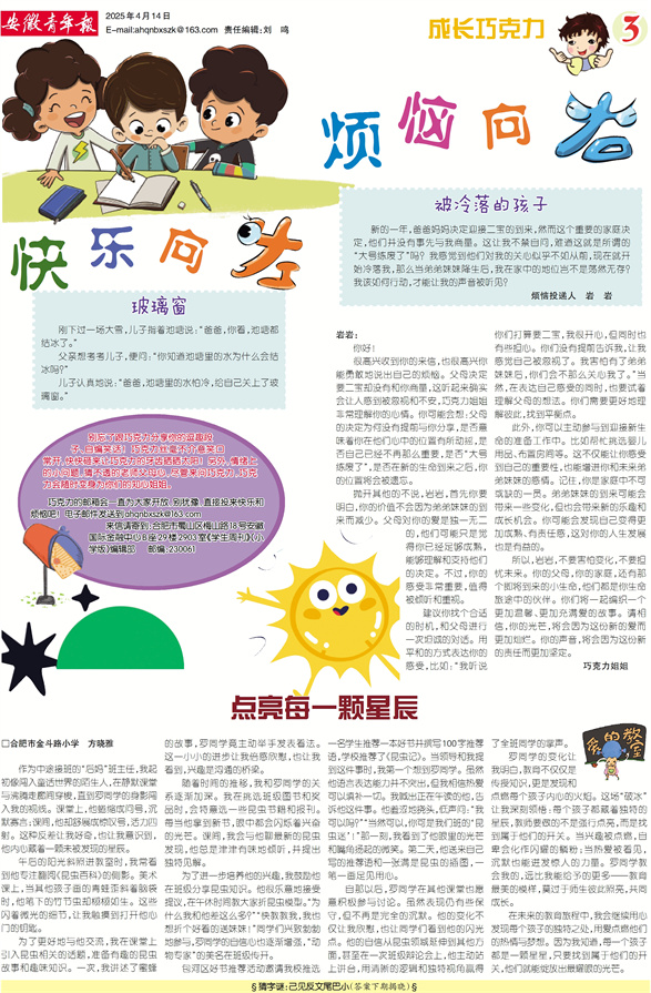 作为中途接班的“后妈”班主任,我起初像闯入童话世界的陌生人,在静默课堂与沸腾走廊间穿梭,直到罗同学的身影闯入我的视线。课堂上,他蜷缩成问号,沉默寡言;课间,他却舒展成惊叹号,活力四射。这种反差让我好奇,也让我意识到,他内心藏着一颗未被发现的星辰。