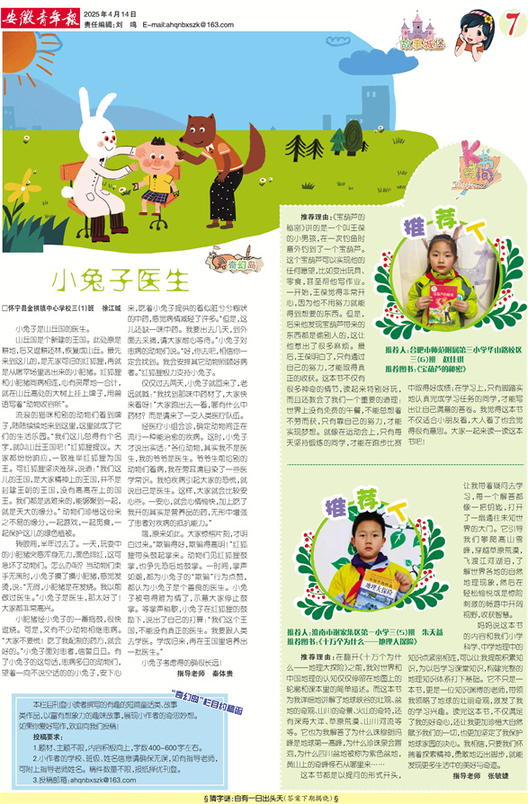 推荐人:淮南市谢家集区第一小学三(5)班 朱天益