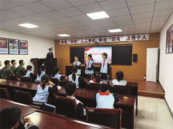 和县历阳镇第一小学 走进军营学担当 □单静玲 近日,和县历阳镇第一小学组织50名少先队员走进和县武警中队,开展“一片橄榄绿,红色军营情”主题实践活动。队员们参观营区、学习内务整理、观摩擒敌拳与器械训练,沉浸式体验军营生活。校外辅导员曹安琦开展国家安全教育讲座,普及国防知识,激发了同学们的爱国情怀与责任感。