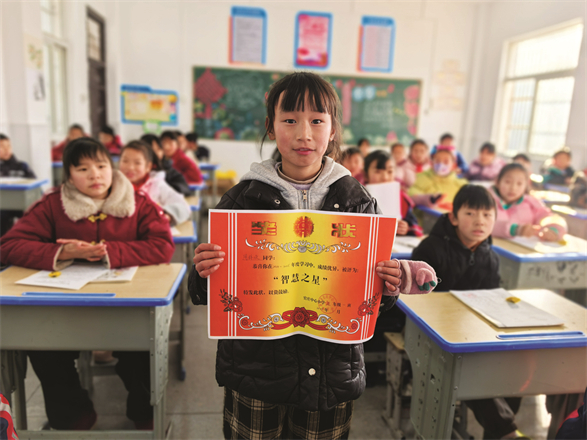 她就是我们今天的主角:第十六届宋庆龄奖学金获得者,就读于潜山市官庄中心小学的周梓欣同学,一个聪明、活泼、开朗的小女孩。