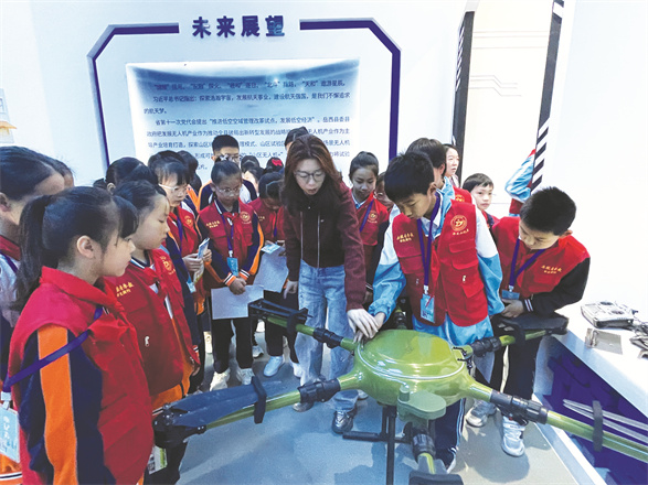 除了无人机,讲解员蔡阿姨还给大家介绍了航空模型、水面航天器等的构造和细节,学生记者们仔细聆听每一个细节,眼中闪烁着对科技的无限向往。“这次参观使我深受感触,虽然看到的只是小小的无人机,但它代表着科技在进步,祖国在发展,我们的国家日渐强盛。”学生记者王淑蕾说。