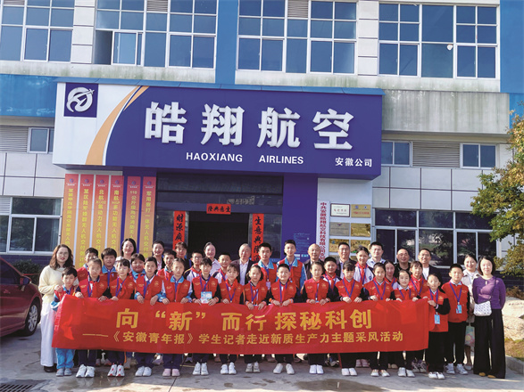 近日,安徽青年报社“向‘新’而行 探秘科创——学生记者走近新质生产力”主题采风活动在岳西县开展,来自岳西县4所学校的本报学生记者代表走进安徽皓翔航空科技有限公司,近距离感受科技魅力;聆听青年学者精彩讲座,与领导面对面交流,在心中种下科创的种子,加深了他们对新质生产力的理解。现在就让我们走进这场科创探秘活动的现场吧!