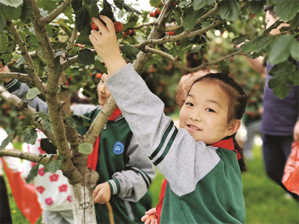 自2013年建校起,为了让学生近距离地感受自然,不断培养学生的劳动兴趣,提升学生劳动技能,学校利用校园空地,开辟了“幸福庄园”,以此作为学生们参与劳动的实践基地。学生们在幸福庄园里不仅种植了各类时令蔬菜,播种了各类农作物,还栽种了各种果树,以及各种观赏植物。学校每季都会开展各种种植及采摘活动,每季累计活动次数都可以达到30次以上,每季覆盖学生1800人以上。与此同时,学校把每年的10月10日定为学校的“幸福采摘节”,学生们将采摘下来的瓜果蔬菜在校园外进行“爱心义卖”,并将所得的善款用来资助学校中的贫困学生。