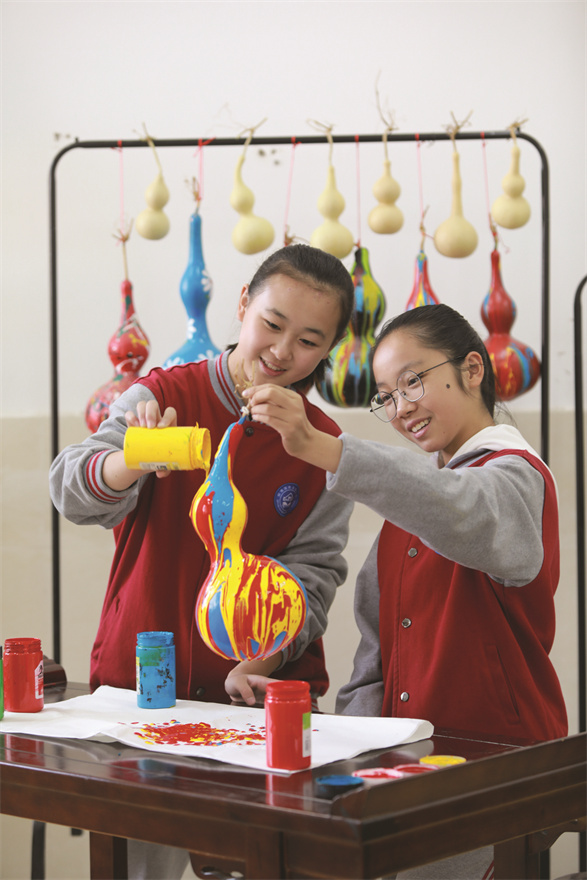 与此同时,学校精心打造的葫芦画课程成为实践活动中独具魅力的重要部分。从葫芦种子播撒在土地里的那一刻起,到葫芦成熟后的加工处理,再到最后精心绘制的创作过程,每一个环节都像是一颗璀璨的明珠,串联起学生们的智慧与汗水。